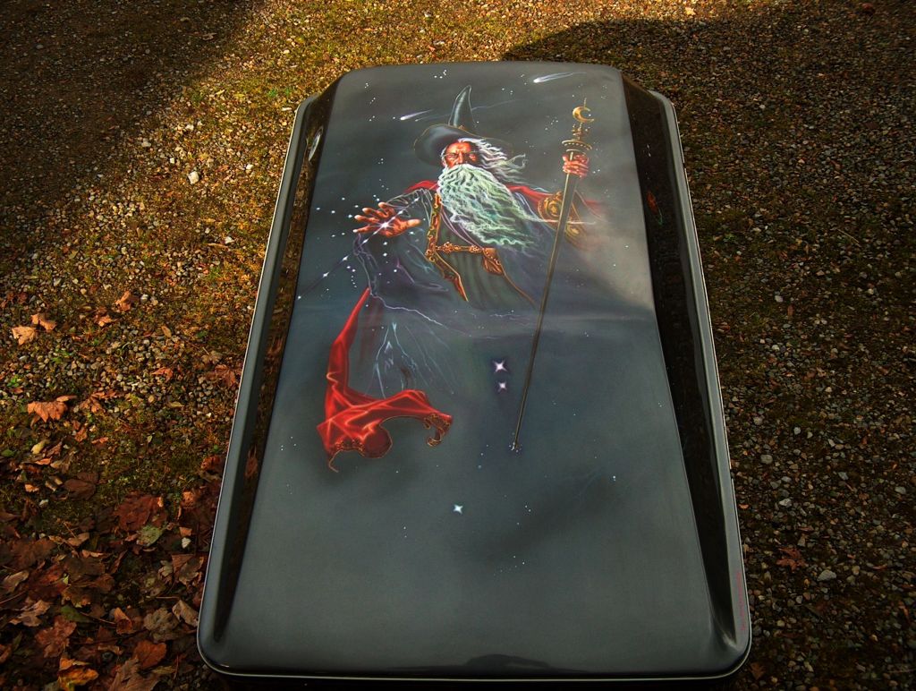 The most incredible artwork is to be found on the lid of the Squire D18 trailer. "The Elder" in what can only be described as High Definition airbrush picture of a truly fantastic wizard. All artwork can be seen within the pictures but will not do it full justice. All airbrush work was sealed with many coats of high quality lacquer to protect and ensure the artwork is long lasting.